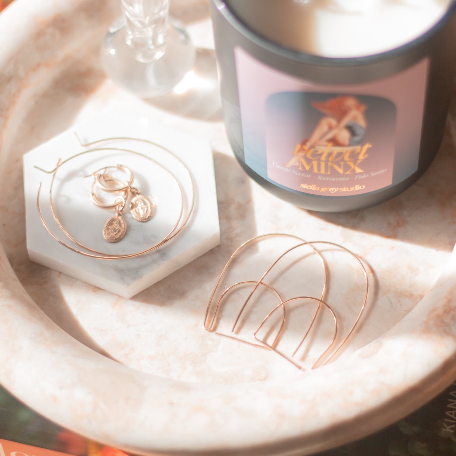 - Velvet Minx: A sophisticated blend that combines the creamy richness of palo santo with Moroccan rose, birch, and lightly sweet cassis nectar. This candle is an excellent choice for creating an ambiance of elegance and total sophistication, perfect for bedrooms or home offices.
